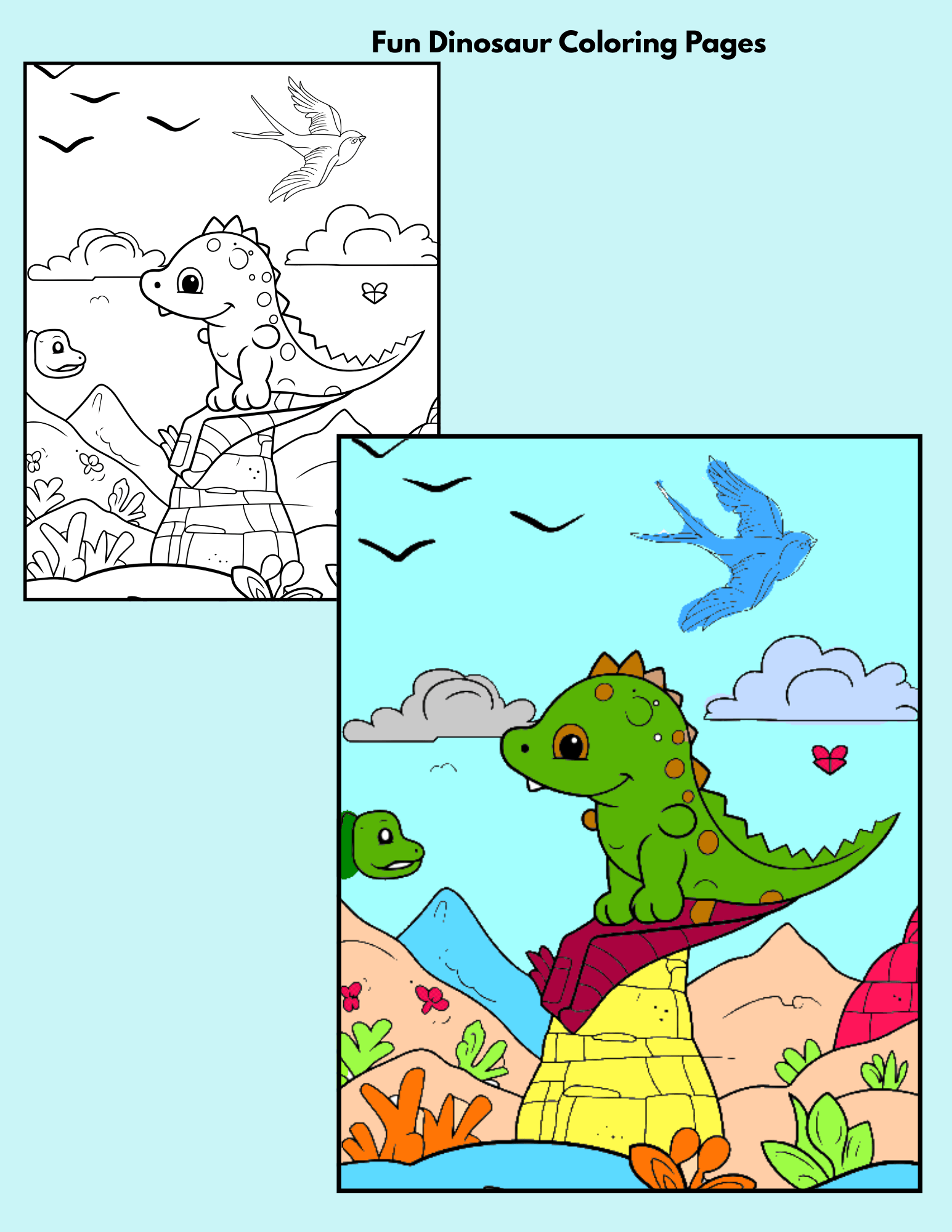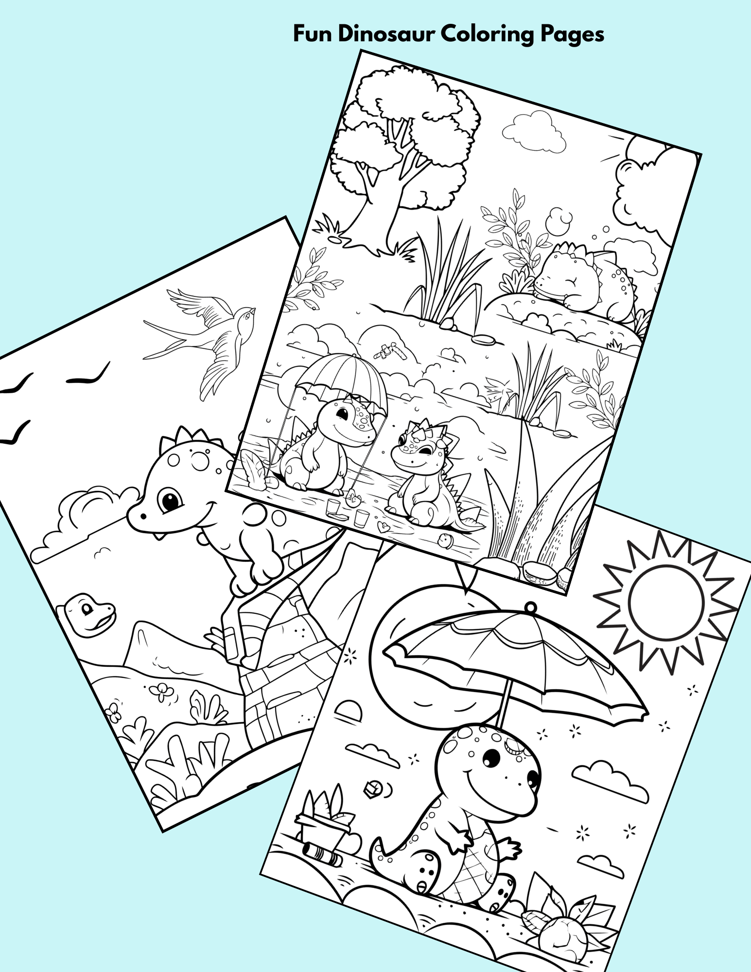 Cute Dinosaur Coloring Book – 10 fun pages with simple, engaging dinosaur illustrations for toddlers and preschoolers. Perfect for coloring, learning, and developing creativity and fine motor skills. Printable PDF for instant use!